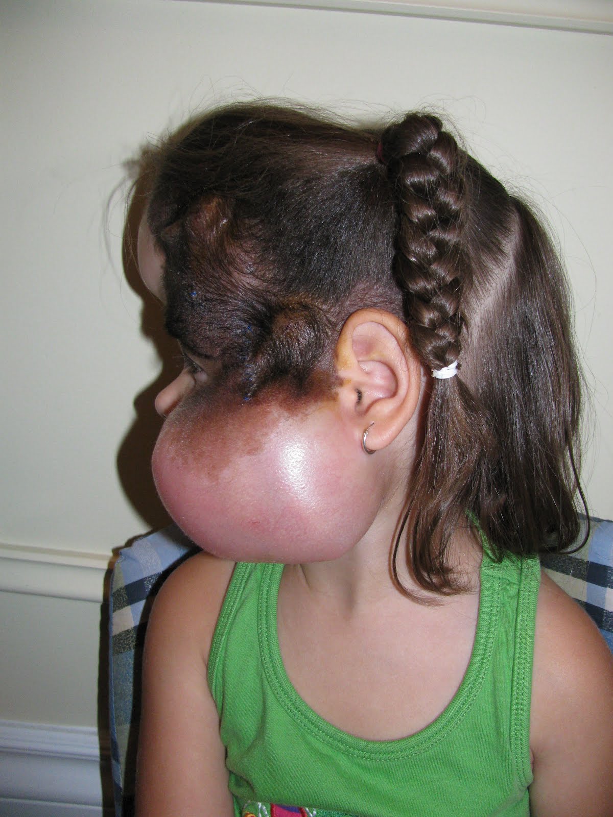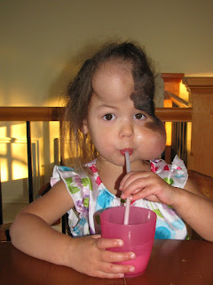 Once the procedures were over, with 17 cc's in the cheek and another 30 in the forehead, Keziah was excited to get some chocolate milk. Good thing Daddy went to buy it because Mommy sure wouldn't think to buy something like this!!!
