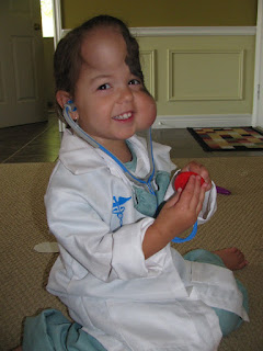 ReplyDeleteWOW..I've "missed" a lot while my internet was down fro renos! We'll be praying for you and your family as this journey comes nearly to an end! Oh btw, NICE doctors outfit!