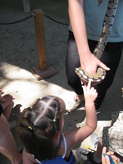 This is about as close as she would get to feed the goat. She was brave enough to pet it though.
