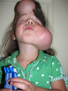 will bleed till the cows come home. Well, while waiting with Keziah, he was playing with Lincoln and Linc got a hold of his dad's nose, which opened up that pinprick. And it bled. And bled and bled and bled. It started just as we got there, through the whole time we were waiting, during the procedure, during bravery bead picking and chocolate milk buying, all the while him dabbing at it. Dr. Zucker came to the rescue and treated it for him! This was good or else he would have been dabbing at it throughout the drive to Ottawa! Keziah was very impressed with her dad's bravery, asking "daddy, you didn't cry?!". And since I know you are wondering, no, he did not get a bravery bead. :o)