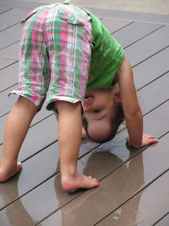 (yes, I absolutely cringe when she puts her head upside down. I just don't like it as I think the pressure of being upside down will do something to the expanders. I mean, my head feels like it's going to pop if I'm upside down too long, so wouldn't hers actually??! I know, it won't but it just looks uncomfortable.)
