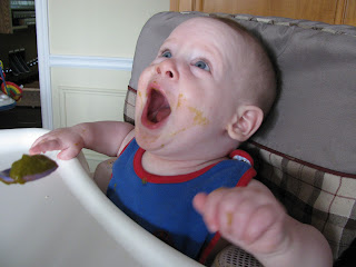 In the last few weeks or so, we've noticed that he isn't always so quick with a smile if he doesn't recognize you. It will come, but often he will stare you down, looking at you with a very unimpressed gaze. Below, there is his gaze, but this time it is directed at me. I was all happy and clapping because he was sitting by himself. He clearly thought it was no big deal.