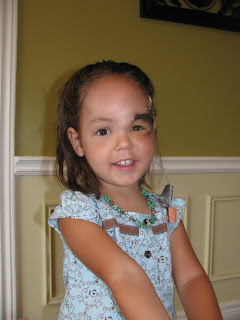 Wednesday was a turning point in the cleaning department. We rigged up a shower head that can be held in the hand and she LOVES it. And so the cleaning has gone a lot more smoother! We are so thankful for that, seeing as nothing else was working. Even the threat of going back to the hospital wasn't working!! By Wednesday, the swelling was also really going down, leaving behind this gorgeous girl!