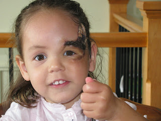 It is now a week ago that we were waiting, waiting, waiting as the doctors intricately took off her birthmark and replaced it with the expanded skin. A week later, the healing process continues to go well. Here's the week in pictures: