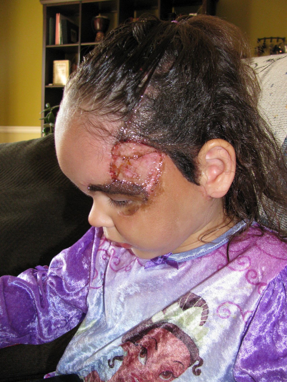 In this picture you can see where the birthmark is still on: down her ear, a bit behind her ear and all on the side of her head.