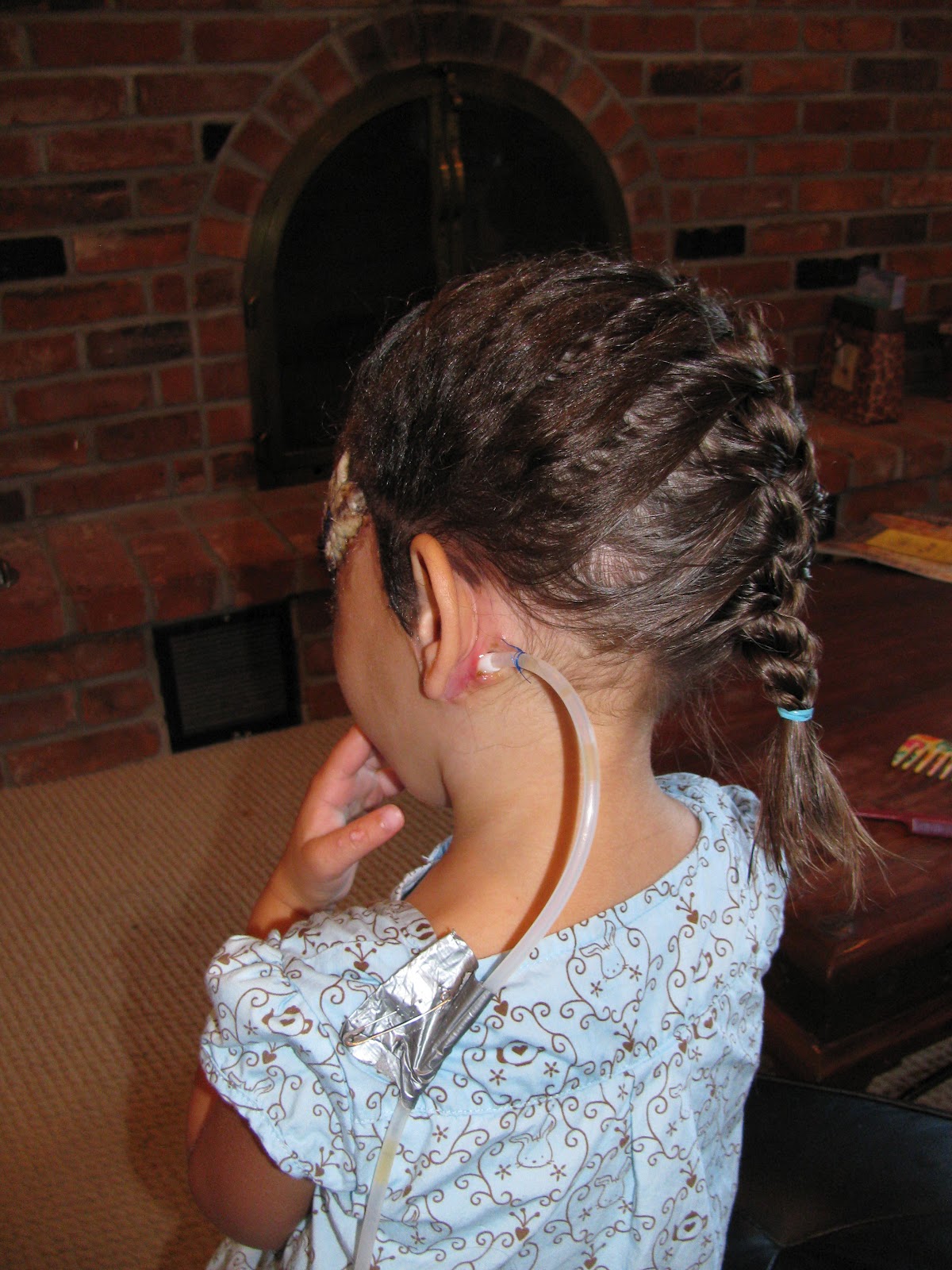 Here is a picture of the drain behind her ear. We are happy to say "good riddance" to that thing!!