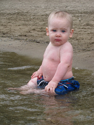 Once dried off, I put him on the blanket to play. I am not sure why I took the blanket. He sure didn't stay on it!! I also didn't realize how much sand ended up in his mouth till a few days later :o)