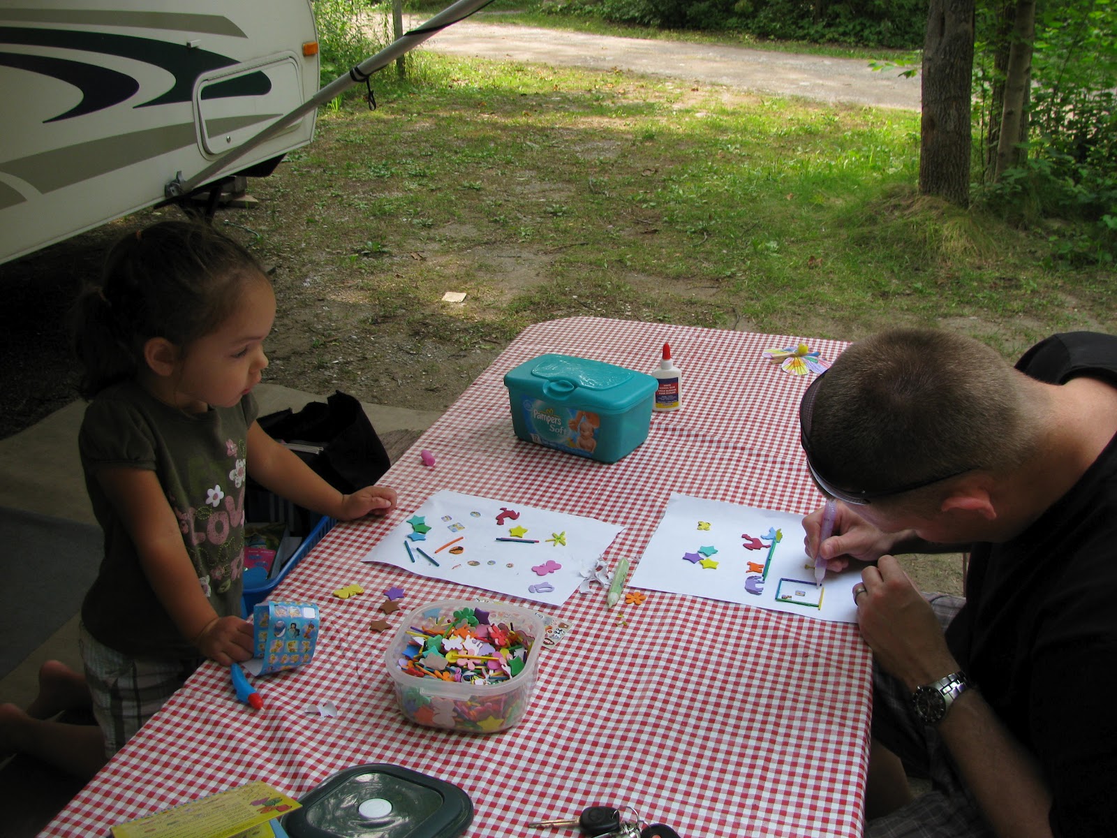 Enjoying one of the many fun park programs. But who needs park programs when you have a dad that will do crafts with you??!