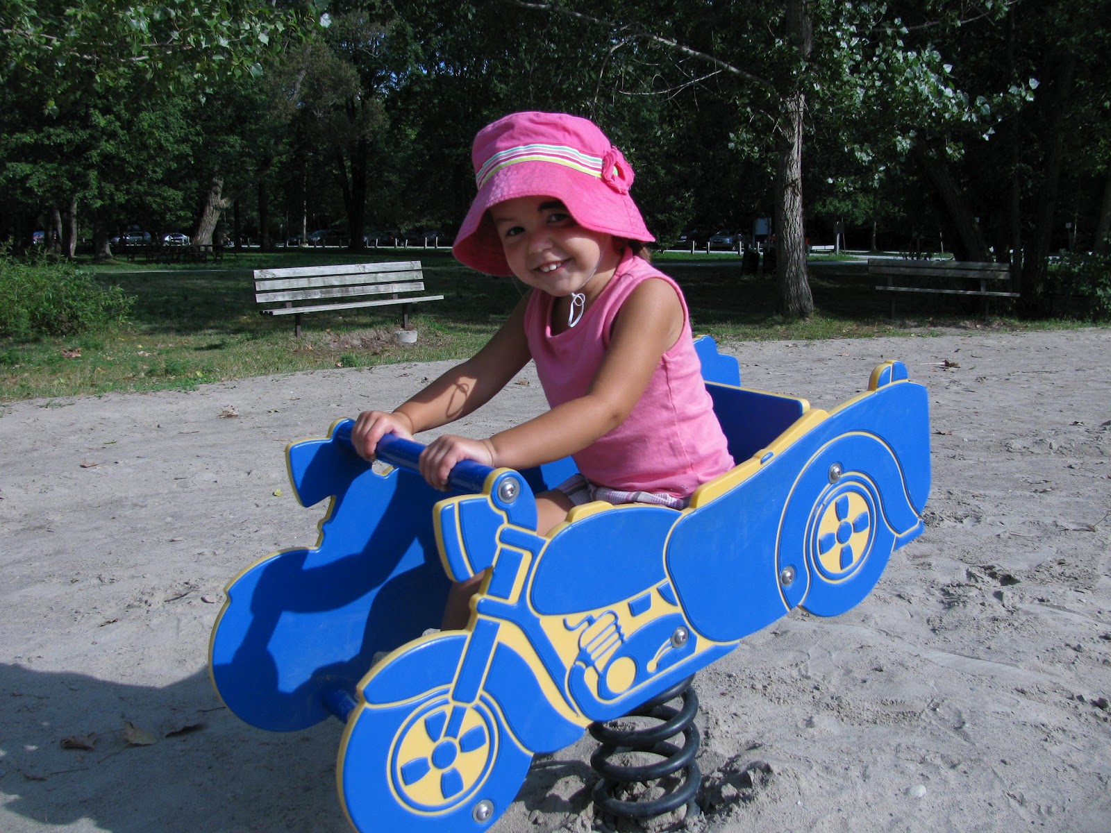 Driving back and forth throughout the park meant we didn't buckle her up. I know. Bad parents. Although we drove a mere 20 km/h, she still felt the need to hang on to the handle: