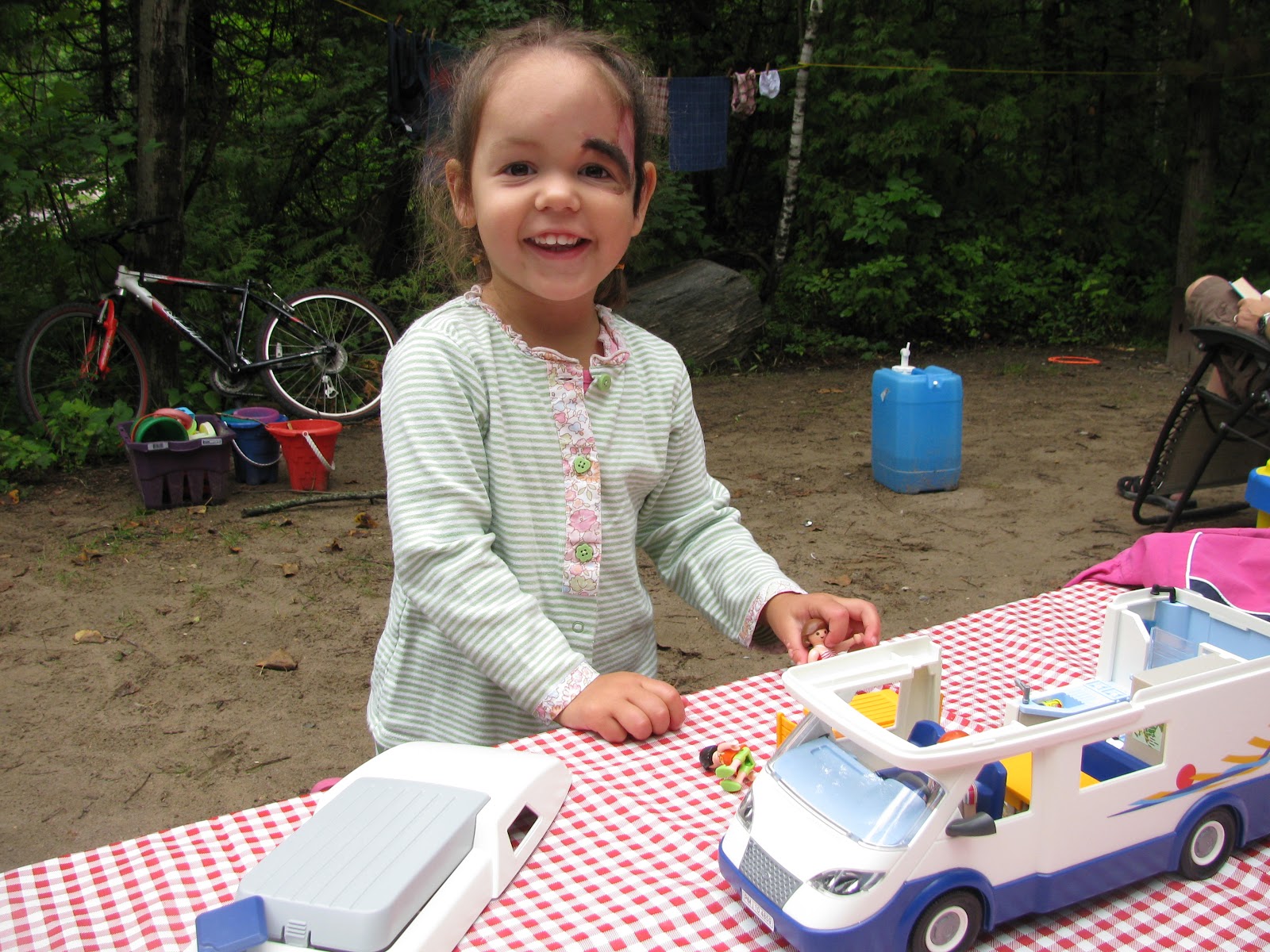 My mom bought Kez the Playmobil camping set for her birthday. Once it was all put together by her dad, Keziah played with this all week long. She loved it!! Thanks, Oma!!