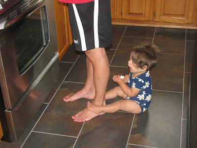 As soon as Keziah learned to crawl, she was often found "under my feet". Although that saying shouldn't be taken literal, there were times that she was seriously under my feet as I turned from the counter and would trip over her.