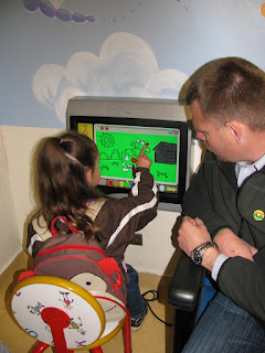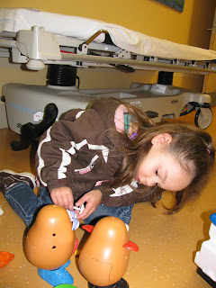All ready and happy to go! I woke her up that morning, telling her we need to get up because we have to get going. A sleepy "Whose house are we going to?" was asked. I then explained to her where we were going. She right away responded that she will want daddy with and that maybe we won't be able to see Dr. Zuker because he'll be busy seeing other kids :o).