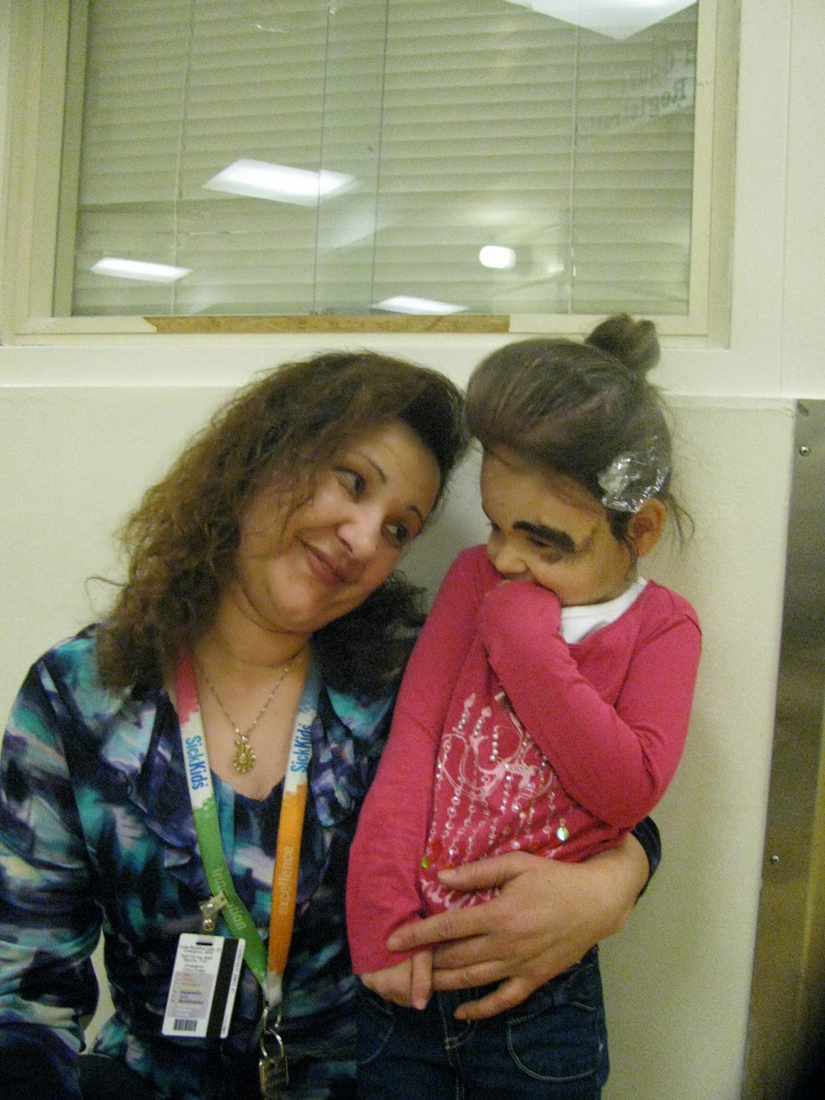 Keziah has touched a lot of people's lives at the hospital, from the nurses, to the volunteers, to even the office administrators. Here she is with Ms. Valentina, the office administrator we see to check in and whose heart Keziah has captured.