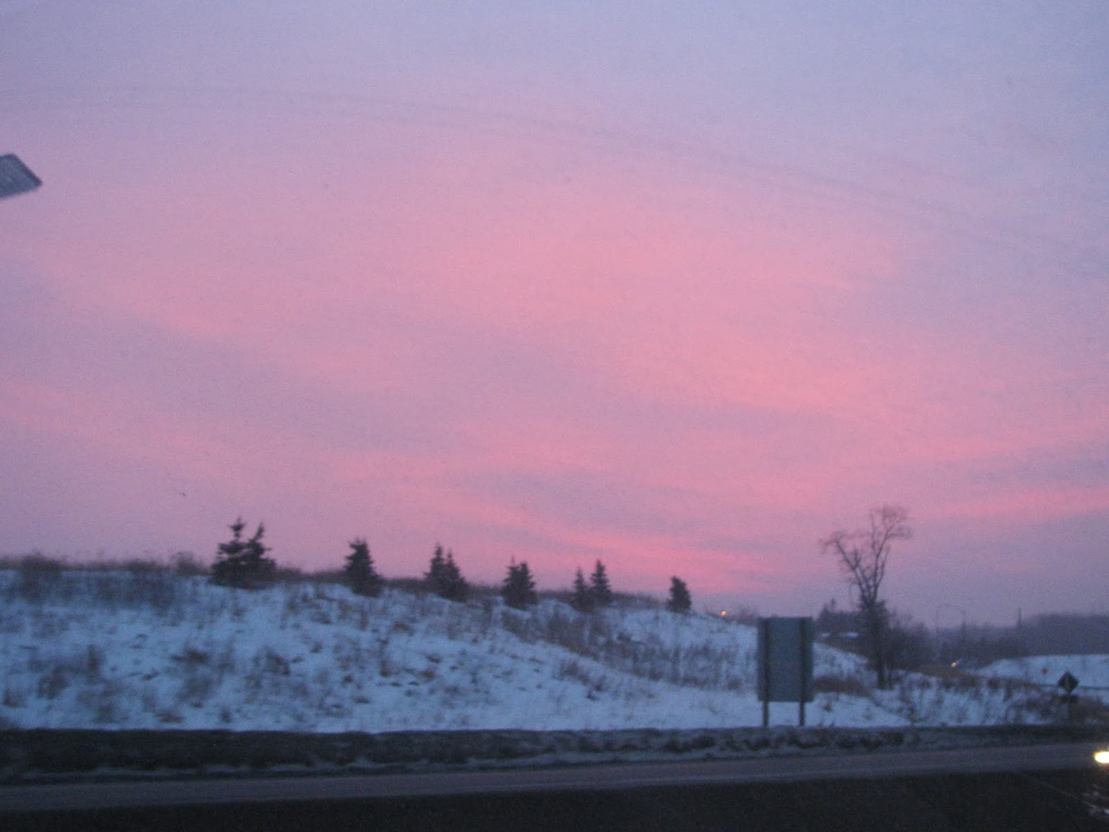 And so this morning, back to Toronto we went for her last fill. It seems to us as well that every week we drove to Sick Kids since November 19th, God blessed us with His presence through the sunrise - a pink one almost every time.