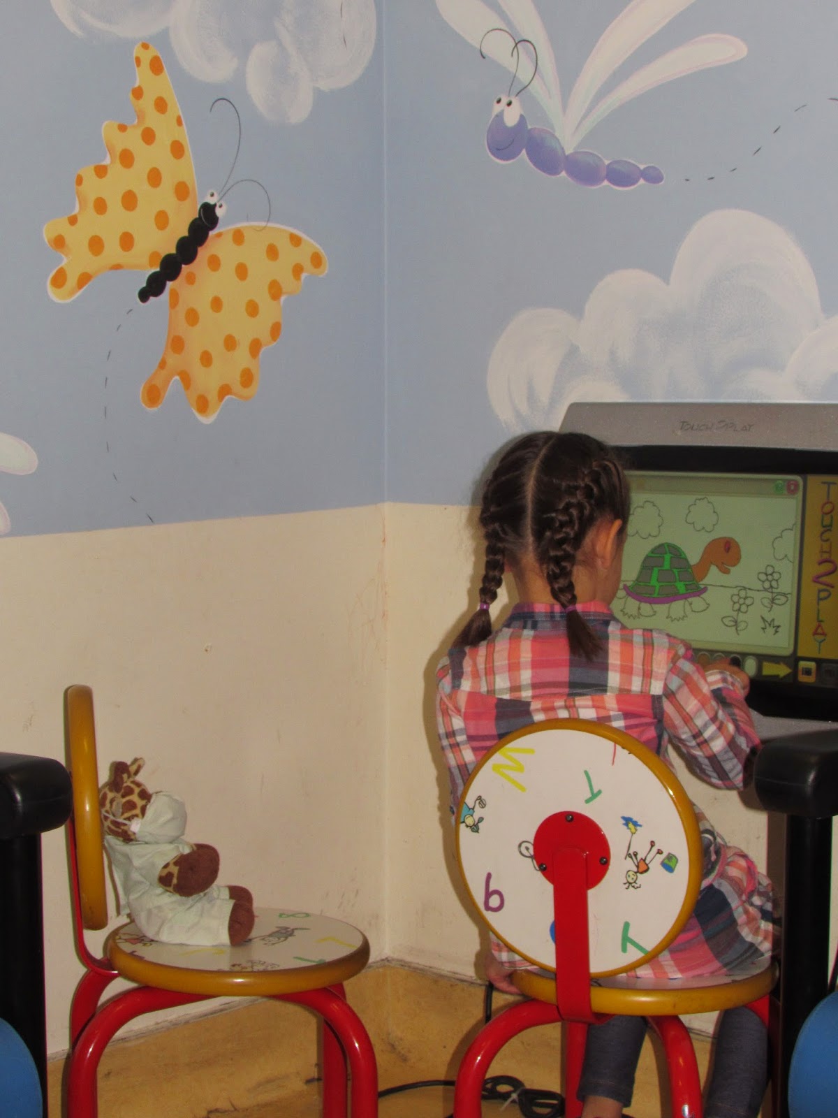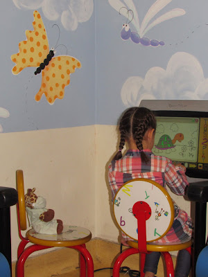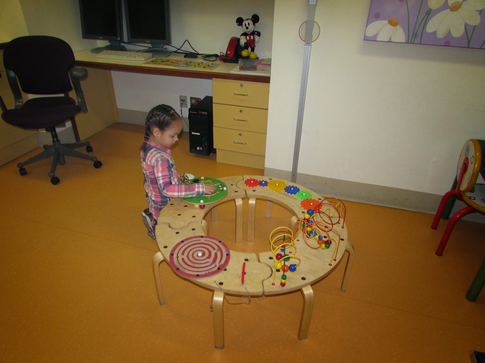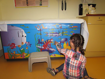 It's amazing how quickly you forget things when you aren't dealing with it weekly for expander fills, like traffic and long waiting room times. But with a computer and especially Opa there with us, that sure helped to pass the time away today! (even Patches, in his doctor's outfit made by Aunt Jenn, took in some computer time ;o)