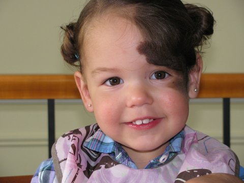 Oh, how I love that darling face!! She is two in the first picture, 15 months in the second picture -the time before all surgeries, procedures, owies, bubbles, drains, suture care, pokes, bruises, hospital stays, IVs, infection. It is also the age where she was so innocent. Not innocent in behaviour (don't be fooled by her adorable face :o). ), but innocent in the fact that she had no idea yet that she has something on her face that not too many others have.