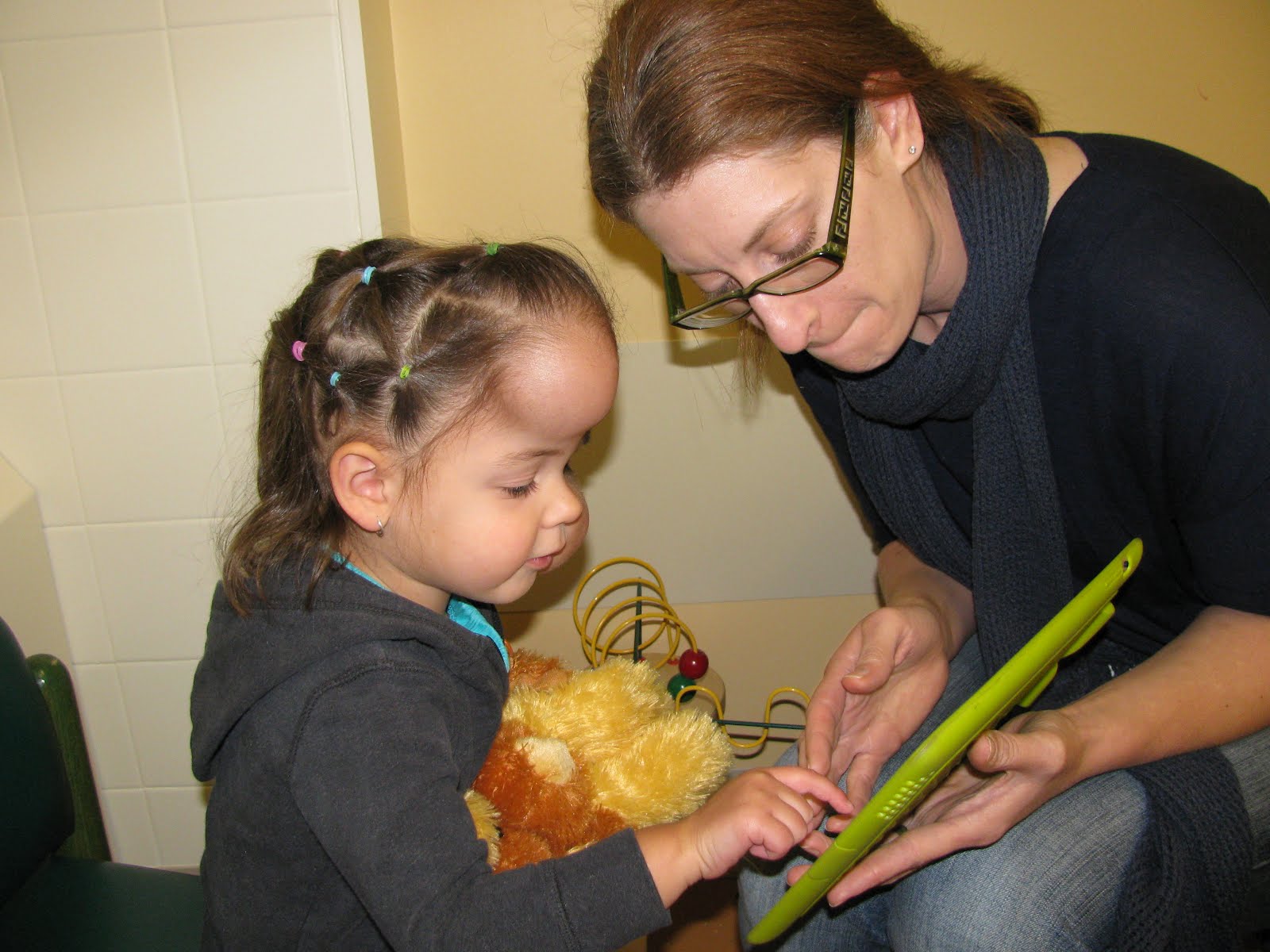 Next week, Shaindy will not be there, so Keziah was introduced to another Child Life Coach, Riann. She will be with Kez for the next time. Looks like Keziah won't mind! Riann has pretty cool things, too!